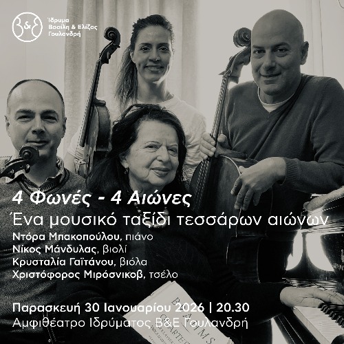 4 Φωνές - 4 Αιώνες Ερατοσθένους 13, Αθήνα 116 35 Ίδρυμα Βασίλη και Ελίζας Γουλανδρή - Αθήνα, Αττική