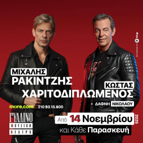 ΜΙΧΑΛΗΣ ΡΑΚΙΝΤΖΗΣ - ΚΩΣΤΑΣ ΧΑΡΙΤΟΔΙΠΛΩΜΕΝΟΣ Λ. Συγγρού 143 Γυάλινο Μουσικό Θέατρο - Νέα Σμύρνη, Αττική