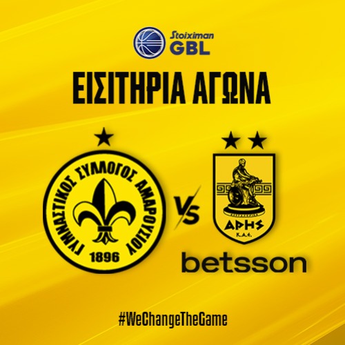 Stoiximan GBL: ΜΑΡΟΥΣΙ - ΑΡΗΣ BETSSON (3η Αγ.) Διονύσου & Πουρνάρα, Αγ. Θωμάς, Μαρούσι, 15124 Κλειστό Γήπεδο Αμαρουσίου, Άγιος Θωμάς - Μαρούσι, Αττική