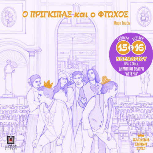 Ο ΠΡΙΓΚΙΠΑΣ ΚΑΙ Ο ΦΤΩΧΟΣ του Μαρκ Τουέιν Κωστοπούλου Περιστέρη 4 Δημοτικό Θέατρο Σερρών «Αστέρια» - Σέρρες