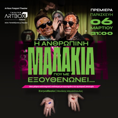 Η ΑΝΘΡΩΠΙΝΗ ΜΑΛΑΚΙΑ ΠΟΥ ΜΕ ΕΞΟΥΘΕΝΩΝΕΙ Αγίου Παντελεήμονος 10, Θεσσαλονίκη Artbox Fargani Theater - Θεσσαλονίκη