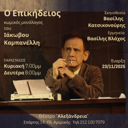 Ο Επικήδειος του Ιάκωβου Καμπανέλλη Σπάρτης 14, Αθήνα 112 52 Θέατρο Αλεξάνδρεια - Σκηνή Β - Πλατεία Αμερικής, Αττική